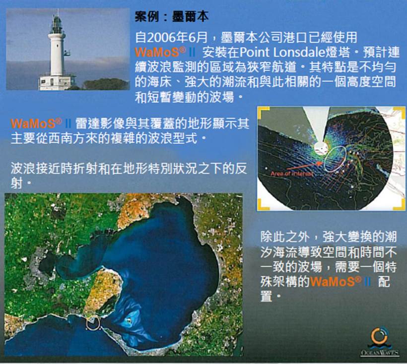 港灣入口處的波浪遙測證明日漸受到重視,特別是船舶外型愈來愈大和某些港口入口處允許小規模時間視窗提供給大船入港。在該區域要取得真實波浪與海流的準確瞭解有時是困難的,因為其中可能有錨碇設施裝設在作業航道上。因此,大部份的決定是根據離岸較遠的波浪量測,這在很多案例中是不足以代表當地實際位置之狀況。