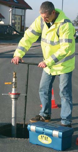 PWG定位系統包括一個接收器(音探聽器)和一個電子脈衝發射器。直接安裝在管線上或消防栓。該系統測量範圍達地面下兩米非金屬管線的洩漏位置。由於技術上的努力,在定位過程內不需要關閉管線。特定的管段需要2bar的壓力,處理這種系統是非常簡單的。不需要特殊的技能。