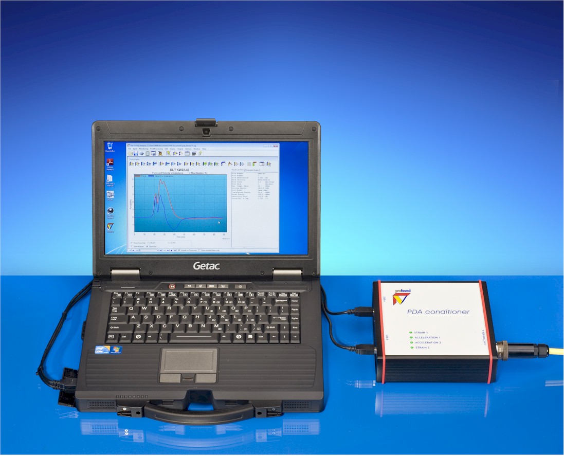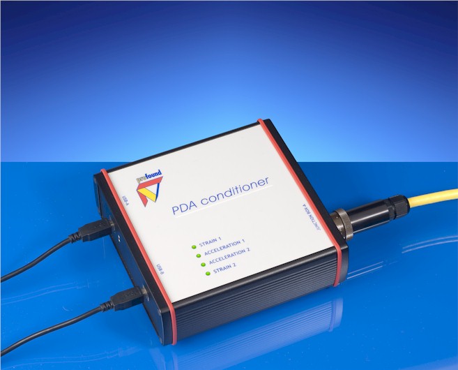 D4945-08規範。此系統由一個PDA-USB信號調節器、帶一個50m電纜盤的4通道接線盒、集成應變及加速度傳感度及一組安裝附件。PDA-USB信號調節器與裝有Windows系統的電腦或筆記本相連。根據使用頻率及測量目的,使用者可使用合適的耐用的現場筆記本來與PDA-USB調節器相連。