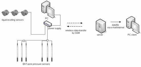 通過無線,建立GSM連接後,用戶可選擇從最多5個IS-感測器上接收資料至使用者電腦上,通常一天一次。因此用戶可信及可靠的通過無線來直接控制整個專案,可不需要去現場。測量狀態及資料將自動Email至使用者,使用者即可對資料進行處理及顯示。