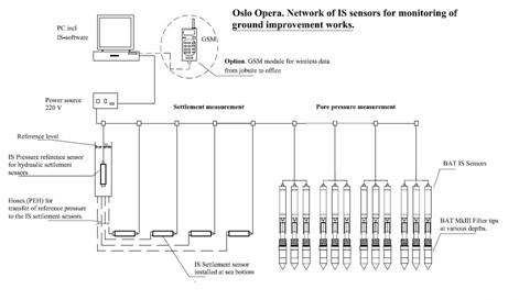設備:總共安裝12個IS-BAT孔隙壓力感測器及4個IS-LLS液位沉降感測器 。所有的感測器與一個IS電源提供器及一個中心網路電腦相連。安裝在距碼頭約200至250米的距離處。