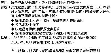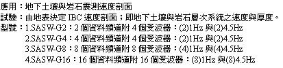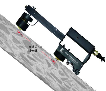 SW 表面波速試驗系統結合現有 CTG-1T 系統,但在試驗探頭前面加上一組可拆式 20 公分長延伸桿附上第二個位移轉換器,亦可作表面波頻譜分析試驗 (SASW) 。