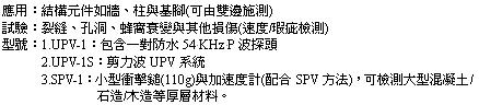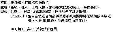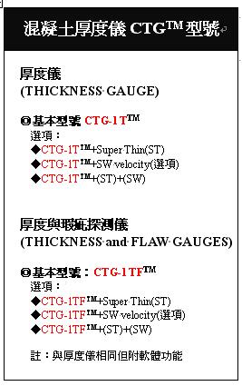 CTG-1T-SW 的優點為可從單邊與混凝土厚度未知時亦可檢測混凝土的品質與速度;但在 CTG-1TF 則需回算 IE 速度。 CTG-1T-SW 可在螢幕顯示表面波速 (Vr) 對波長與計算 IE 波速 (V) 並以一品質係數使混凝土深度量測平均速度的結果一致化。 CTG-1T-SW 可用敲擊迴音 (IE) 或超音波脈衝波速 (UPV) 量測作為現場與試驗室強度與波速的相關校正 (correlation) 。