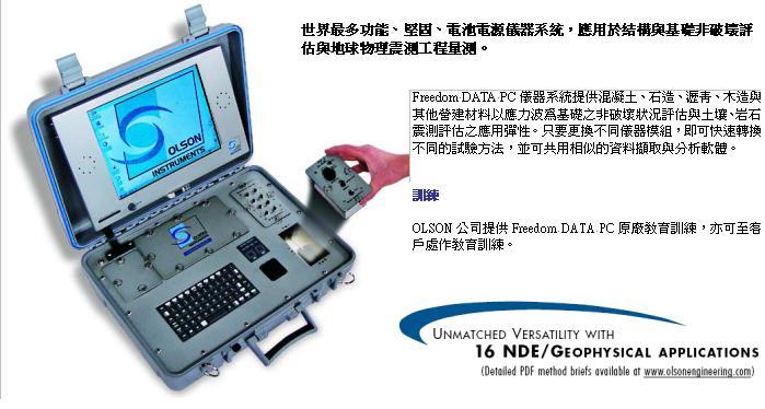 CTG-1TF-SW 結合敲擊迴音 (IE) 厚度 / 瑕疵檢測附 SASW 速度量測;為世界上最強功能混凝土厚度、完整性與品質的試驗儀器。