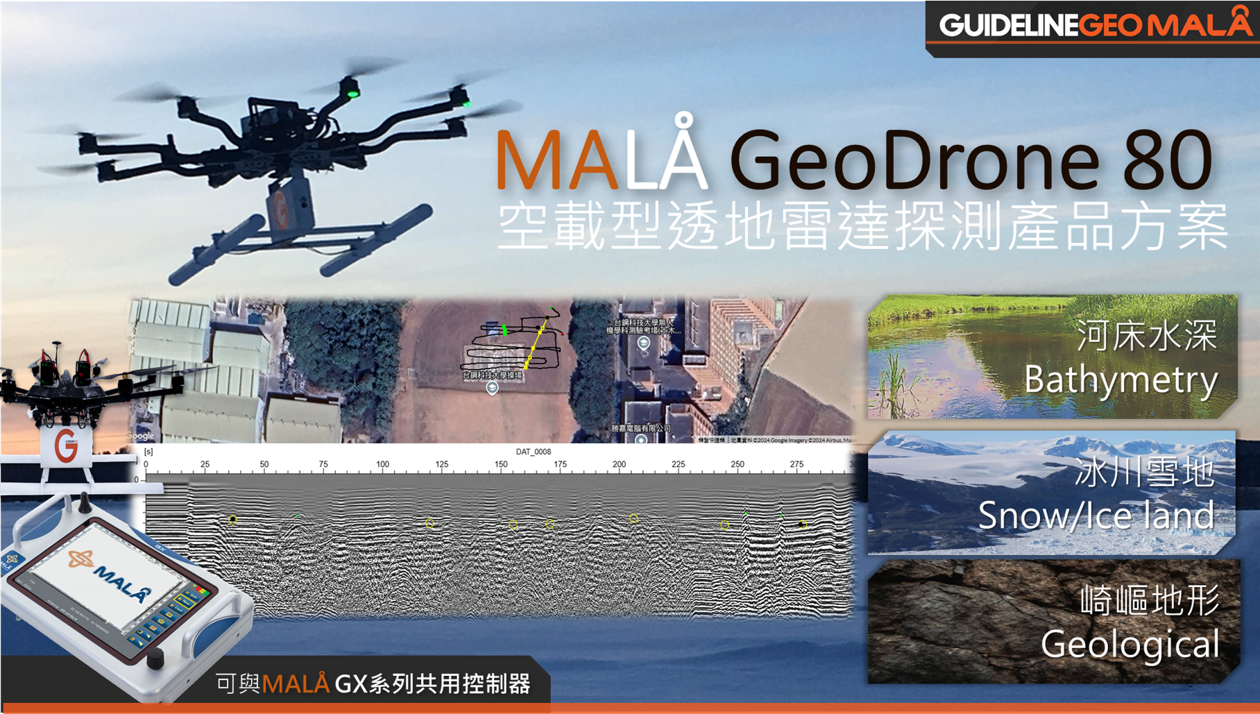 GeoDrone 80本身是一款透過無人機空載的透地雷達裝置,用於提高野外作業效率,克服偏遠、危險和難以,例如在冰雪覆蓋的地面、多岩石和不平坦的地形、淺水域、枯水期河床和雪崩易發地區。