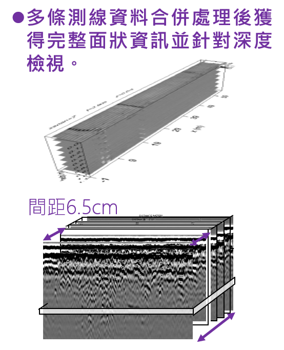 , 與之相反MIRA系統可高速擷取完整的三維數據,確保大範圍測繪無資料遺失,適用於各類大面積淺層地下探測,如管線探測、考古遺跡、地層結構與線性物體掃描。