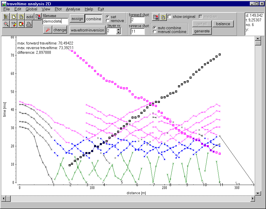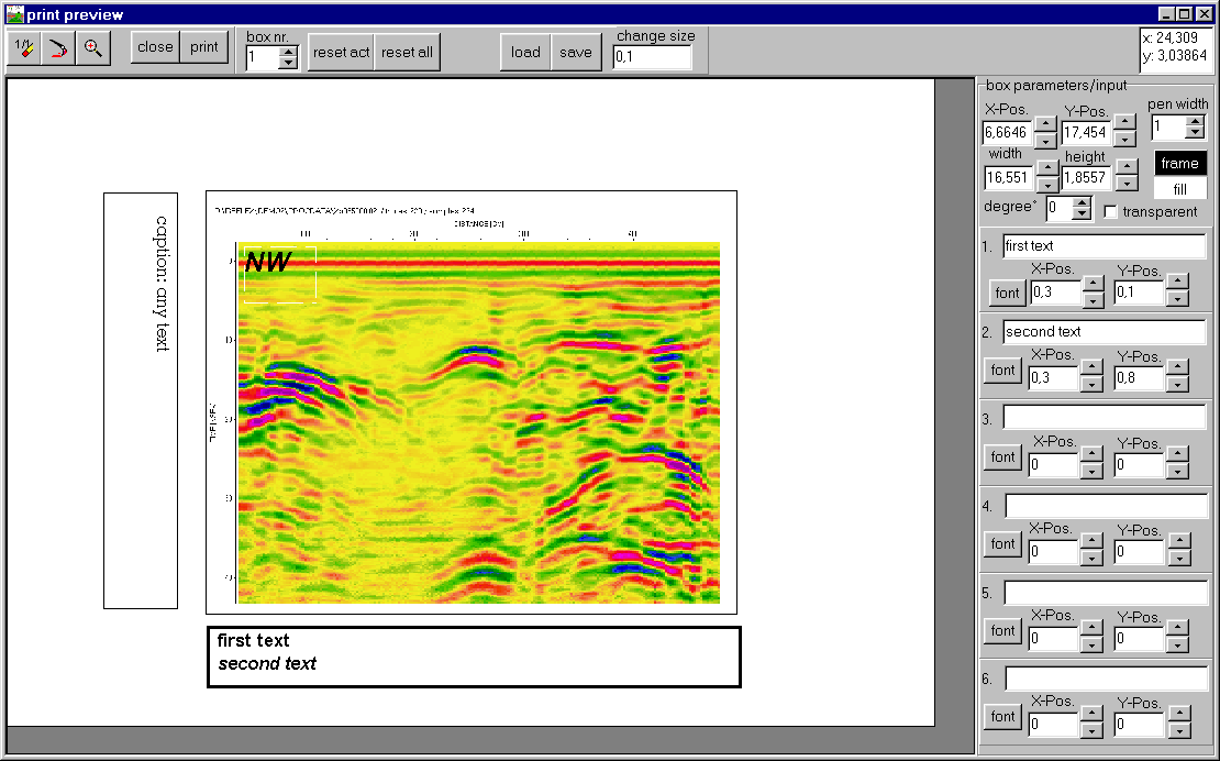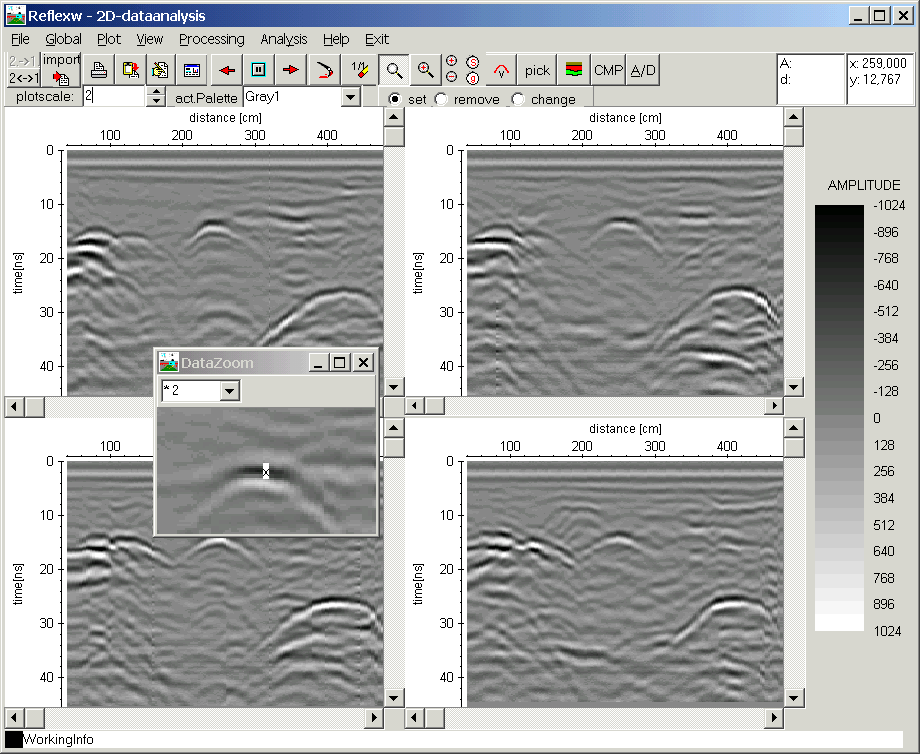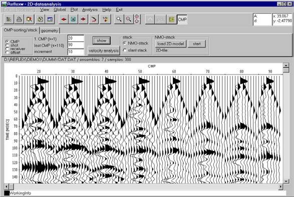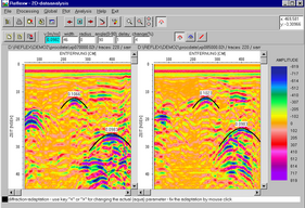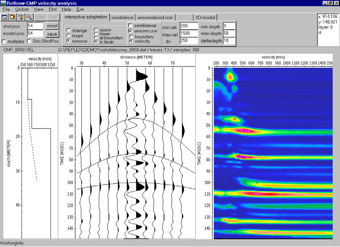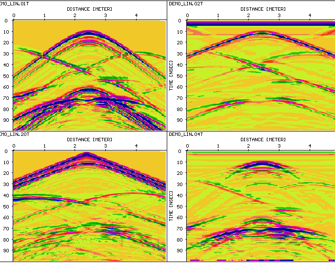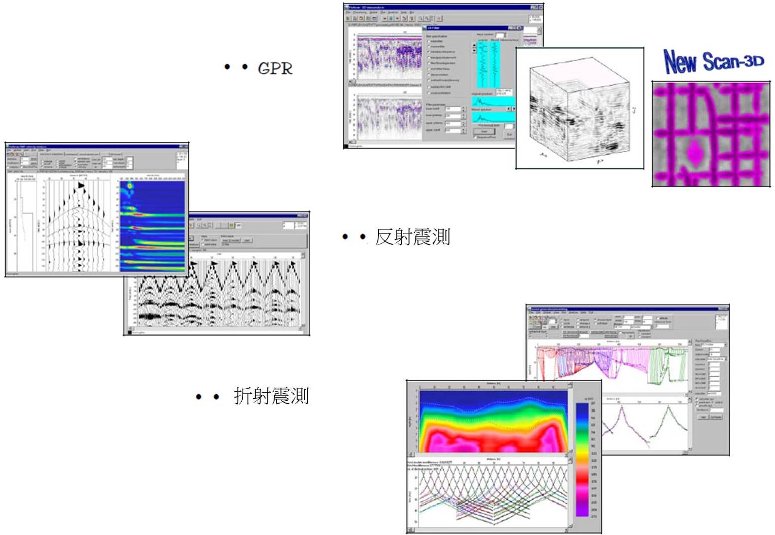 - 可適用於GPR、反射震測、折射震測、單點資料處理(分類、顯示、處理、NMO分析、疊加)。