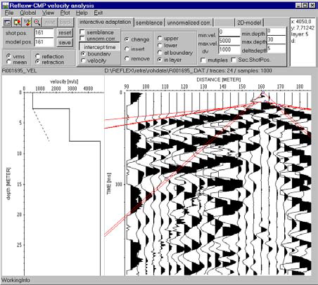 - 交互式CMP分析或單點資料分析採用外觀分析或交互式組成方法計算反射雙曲線(反射震測)