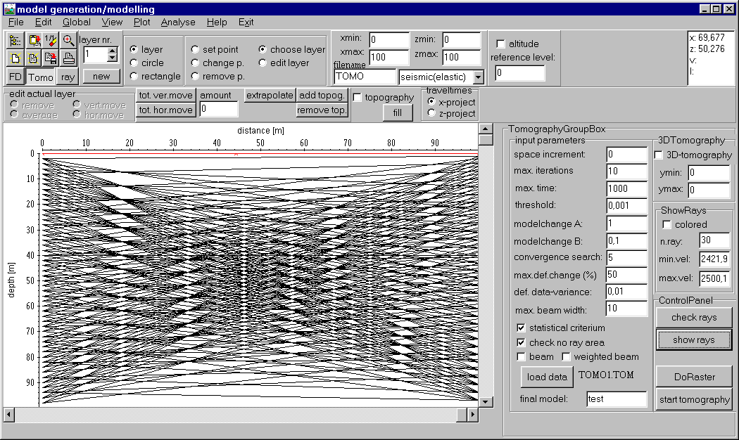 - 斷層法採用 SIRT,可作時間走時的轉換;支援直線與曲線分析。