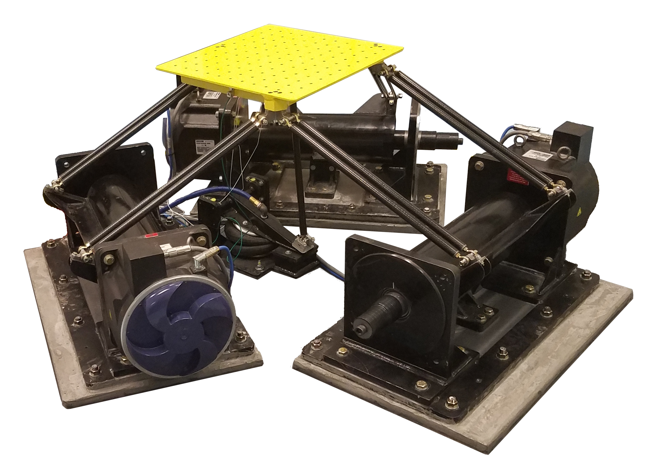 運動平台是通常具有較大的位移能力(最大±1 m和最大±40度),並在較低的頻率(通常低於2 Hz)下運行的振動台。這些設備用於模擬大浪中的船舶運動,飛機操縱和風引起的建築物運動。這些工作台可以由電動或液壓執行機構驅動,並具有1至6個自由度(DOF)。
