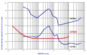 Self-noise:  Below USGS NLNM in 0.05 - 5Hz range; -170dB @ 0.033Hz.