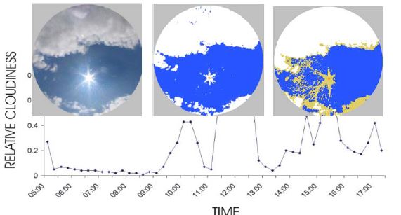 分類晴朗的天空、總半球雲覆蓋、光學厚和薄的雲,地平線以上雲的覆蓋或是人為的地平線以上雲的覆蓋。
