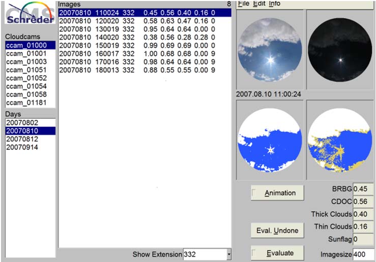 雲底高度和雲運動軟體提供了評估與實際推算雲高的可能性。使用兩個天空成像儀的時間同步,圖像和語言環境數據(經緯度,長,海拔),存儲每個CMS ASI圖像檔案。