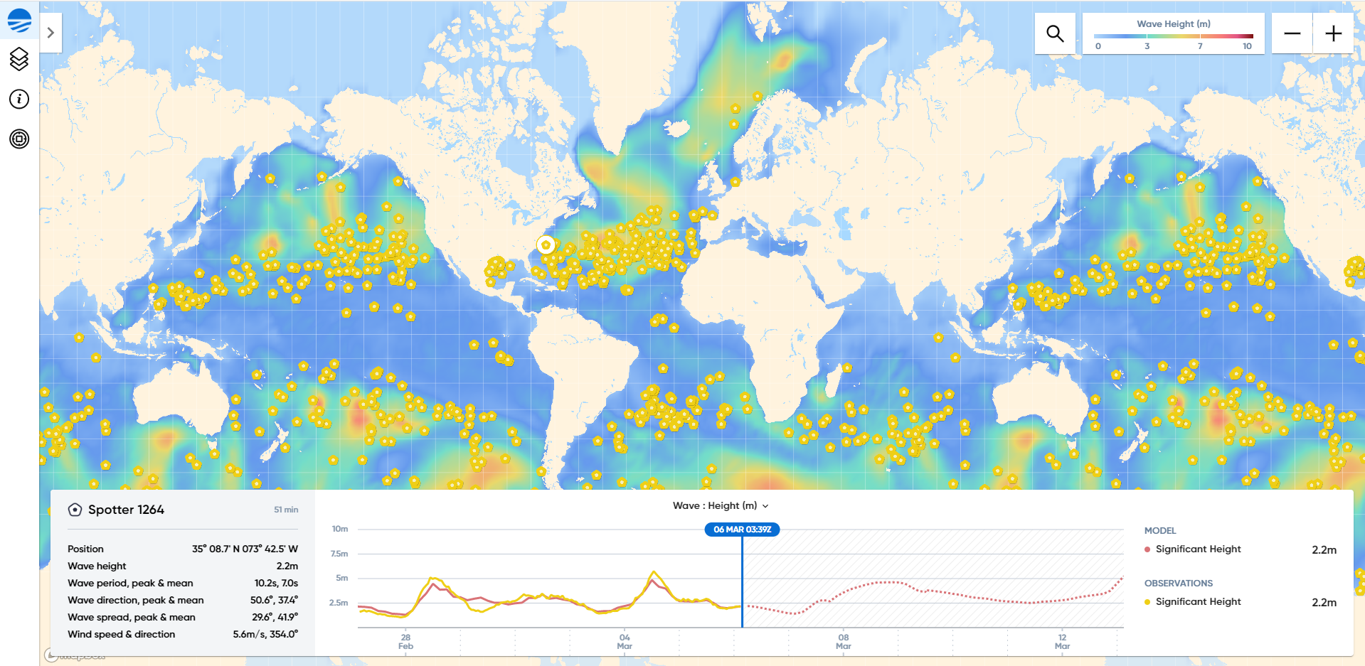 海洋感測設備收集波浪、風、海面溫度和氣壓數據,並通過 Sofar 的 Spotter 儀表板和 API 提供見解。Spotter buoy讓您即時、準確地了解海洋狀況。 |